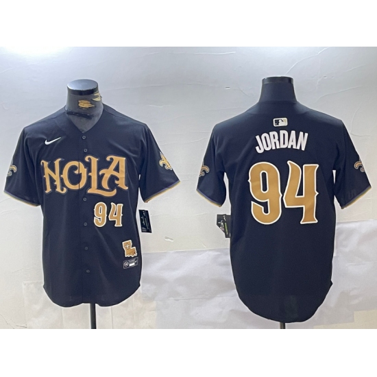 >Men's New Orleans Saints #94 Cameron Jordan Number Black Nola Baseball Jersey