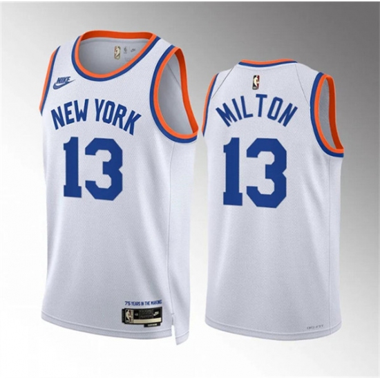 Men's New Yok Knicks #13 Shake Milton White 2021-22 City Edition Stitched Basketball Jersey