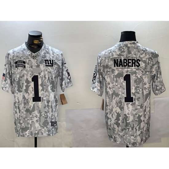 >Men's New York Giants #1 Malik Nabers 2024 F.U.S.E Arctic Camo Salute To Service Limited Stitched Football Jersey