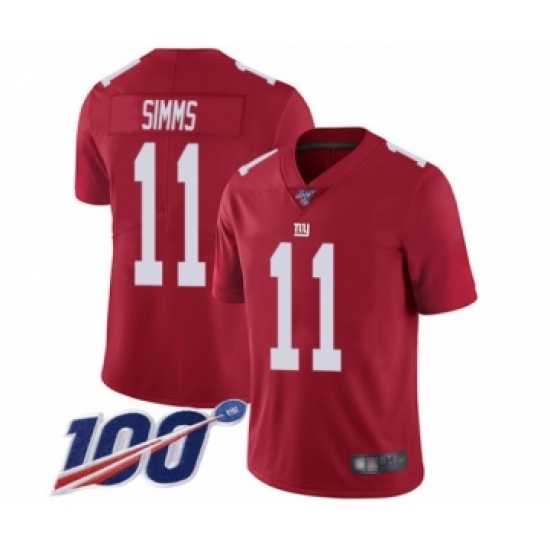 >Men's New York Giants #11 Phil Simms Red Limited Red Inverted Legend 100th Season Football Jersey