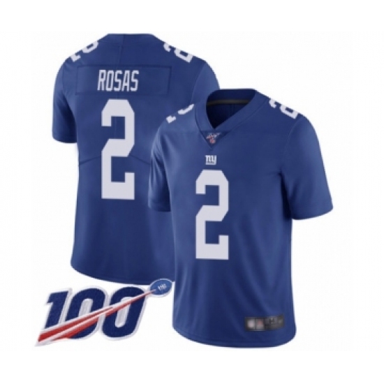 >Men's New York Giants #2 Aldrick Rosas Royal Blue Team Color Vapor Untouchable Limited Player 100th Season Football Jersey