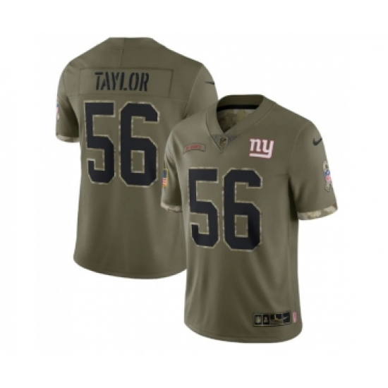 >Men's New York Giants #56 Lawrence Taylor 2022 Olive Salute To Service Limited Stitched Jersey