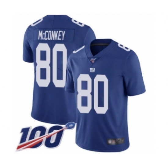 >Men's New York Giants #80 Phil McConkey Royal Blue Team Color Vapor Untouchable Limited Player 100th Season Football Jersey