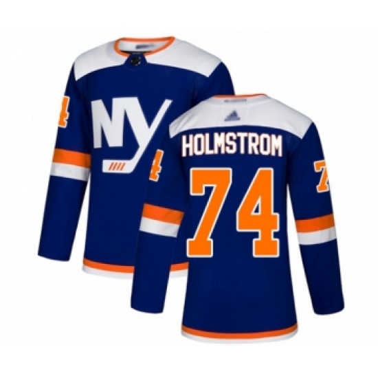 >Men's New York Islanders #74 Simon Holmstrom Authentic Blue Alternate Hockey Jersey