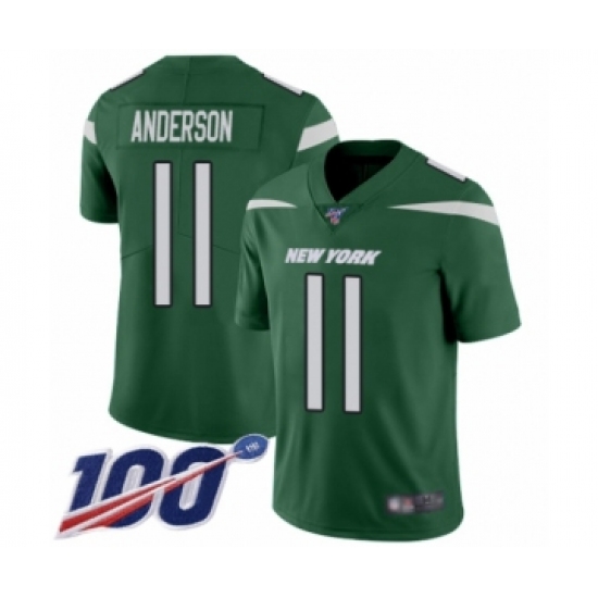 Men's New York Jets #11 Robby Anderson Green Team Color Vapor Untouchable Limited Player 100th Season Football Jersey