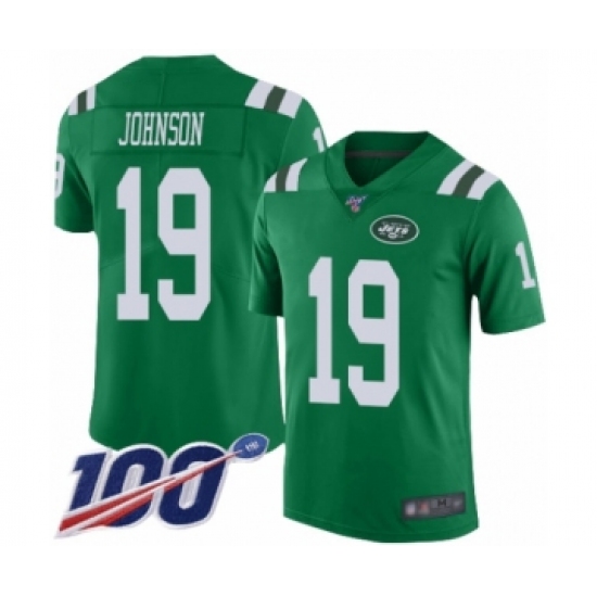 >Men's New York Jets #19 Keyshawn Johnson Limited Green Rush Vapor Untouchable 100th Season Football Jersey
