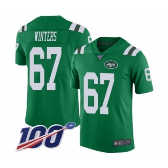 Men's New York Jets #67 Brian Winters Limited Green Rush Vapor Untouchable 100th Season Football Jersey