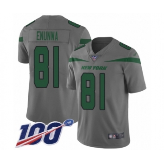 >Men's New York Jets #81 Quincy Enunwa Limited Gray Inverted Legend 100th Season Football Jersey