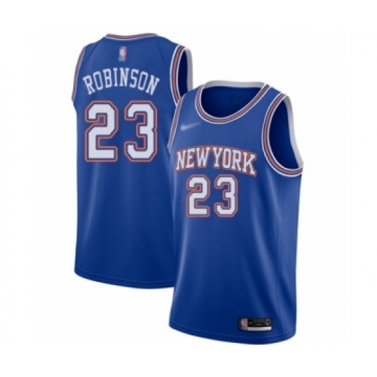 >Men's New York Knicks #23 Mitchell Robinson Authentic Blue Basketball Jersey - Statement Edition