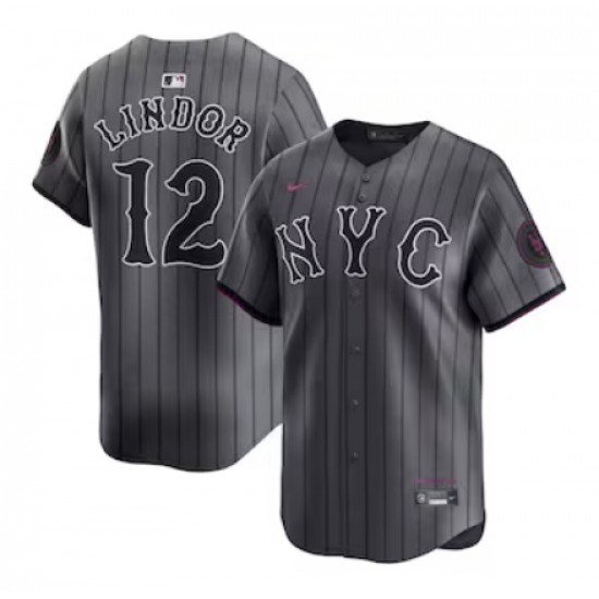 Men's New York Mets #12 Francisco Lindor Nike Graphite 2024 City Connect Limited Player Jersey