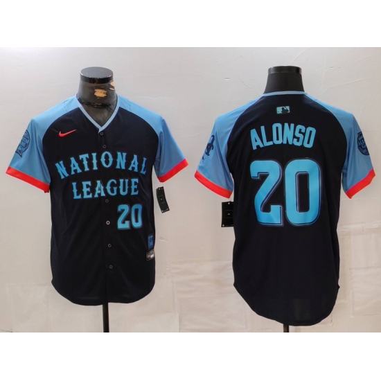 >Men's New York Mets #20 Pete Alonso Number Navy 2024 All Star Limited Stitched Jersey
