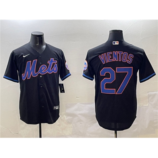 Men's New York Mets #27 Mark Vientos Black Cool Base Stitched Baseball Jersey
