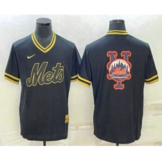 Men's New York Mets Big Logo Black Gold Nike Cooperstown Legend V Neck Jersey