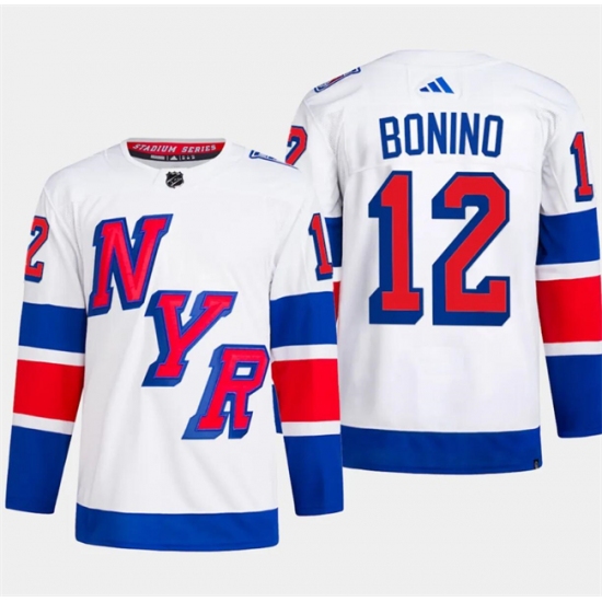>Men's New York Rangers #12 Nick Bonino White 2024 Stadium Series Stitched Jersey