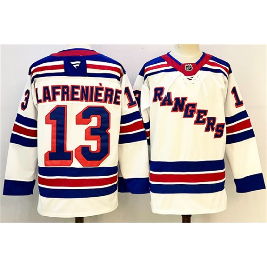 Men's New York Rangers #13 Alexis Lafreniere White 2024-25 Away Stitched Hockey Jersey