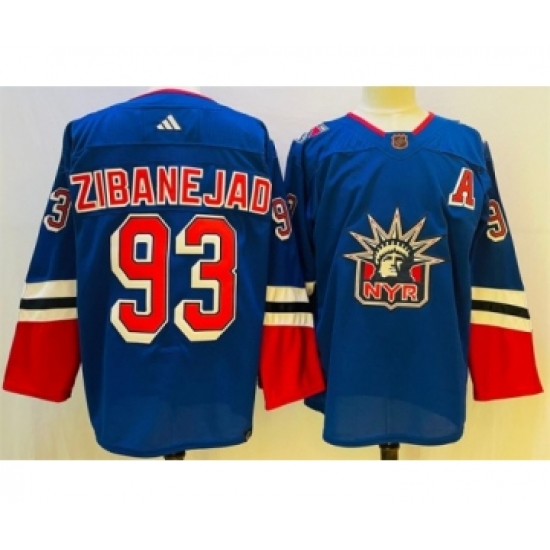 Men's New York Rangers #93 Mika Zibanejad Blue 2022-23 Reverse Retro Stitched Jersey