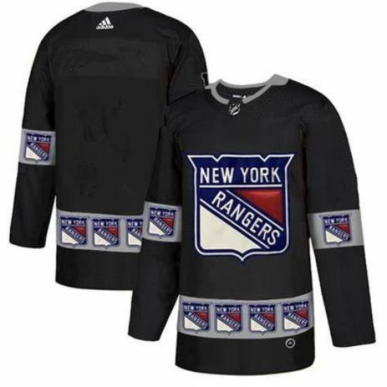 >Men's New York Rangers Black Blank Team Logos Fashion Adidas Jersey