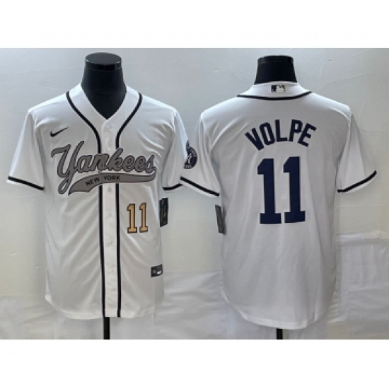 Men's New York Yankees #11 Anthony Volpe White Cool Base Stitched Baseball Jersey