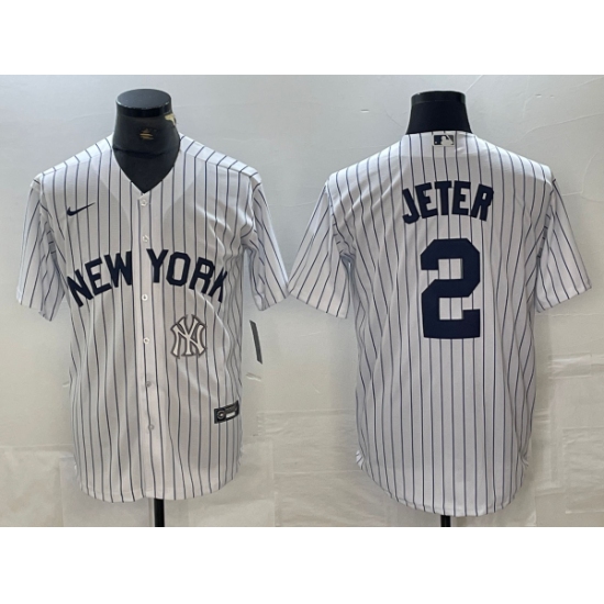 Men's New York Yankees #2 Derek Jeter White Pinstripe Name Fashion Cool Base Jersey