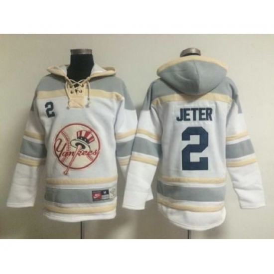 >Men's New York Yankees #2 Derek Jeter White Hoodie