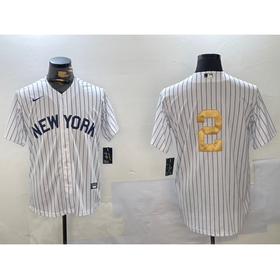 Men's New York Yankees #2 Derek Jeter White Pinstripe Without Name Fashion Cool Base Jersey