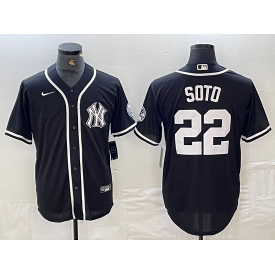 Men's New York Yankees #22 Juan Soto Black White Cool Base Stitched Jersey