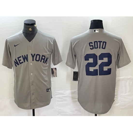 Men's New York Yankees #22 Juan Soto Name 2021 Grey Field of Dreams Cool Base Stitched Baseball Jersey