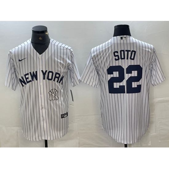 Men's New York Yankees #22 Juan Soto Navy Pinstripe Fashion Cool Base Jersey