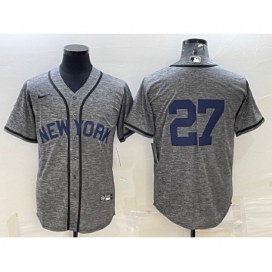 Men's Majestic New York Yankees #27 Giancarlo Stanton Replica Grey Road MLB Jersey