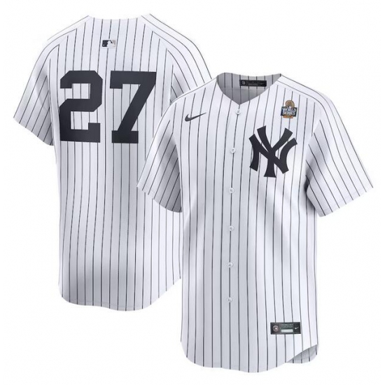 >Men's New York Yankees #27 Giancarlo Stanton White 2024 World Series Home Limited Stitched Baseball Jersey