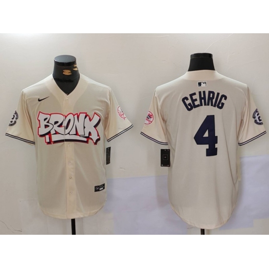 Men's New York Yankees #4 Lou Gehrig Cream Limited Stitched Baseball Jersey