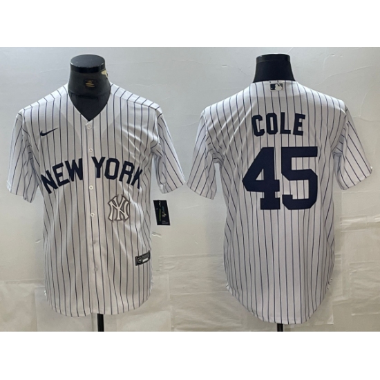 >Men's New York Yankees #45 Gerrit Cole White 2024 Cool Base Stitched Jersey