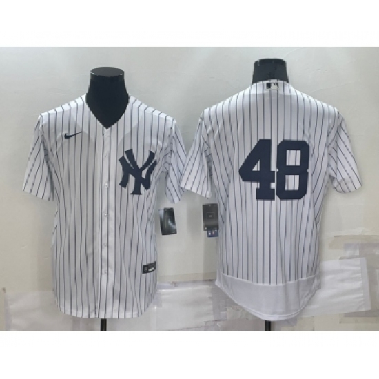 >Men's New York Yankees #48 Anthony Rizzo White No Name Stitched MLB Flex Base Nike Jersey