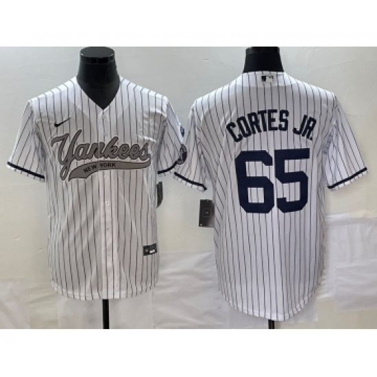 >Men's New York Yankees #65 Nestor Cortes Jr White Cool Base Stitched Baseball Jersey