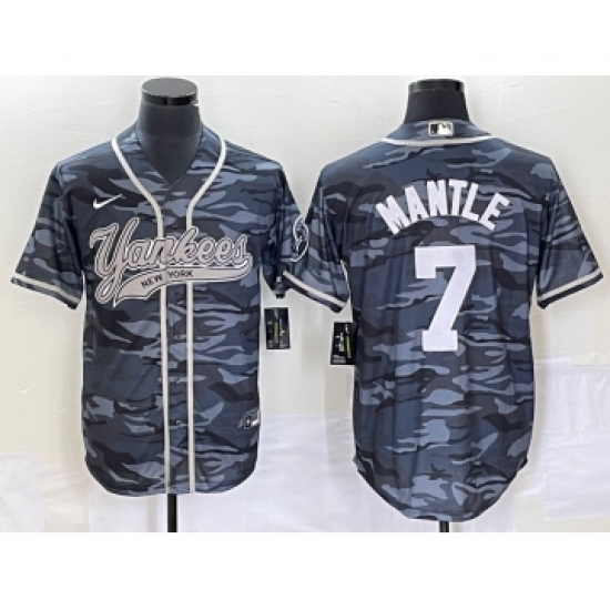 >Men's New York Yankees #7 Mickey Mantle Grey Camo Cool Base Stitched Baseball Jersey