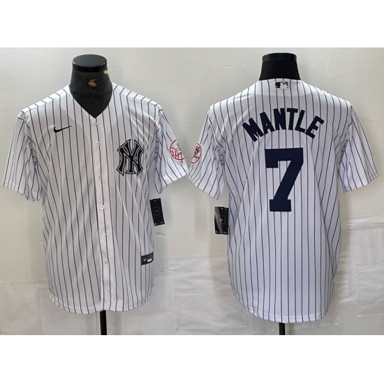 >Men's New York Yankees #7 Mickey Mantle Name White With 2024 Cool Base Stitched Jersey