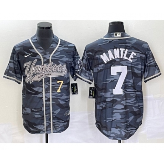 Men's New York Yankees #7 Mickey Mantle Number Grey Camo Cool Base Stitched Baseball Jersey