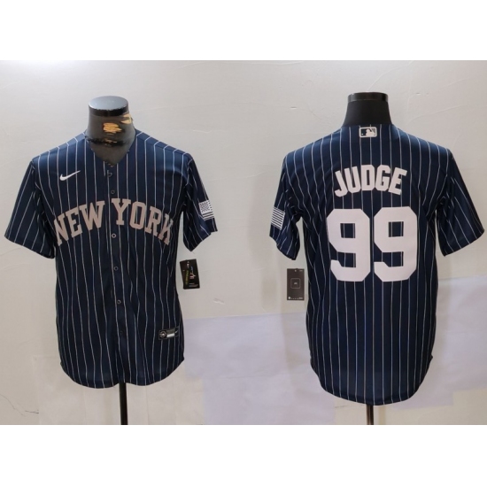 >Men's New York Yankees #99 Aaron Judge Navy Pinstripe Fashion Cool Base Jersey