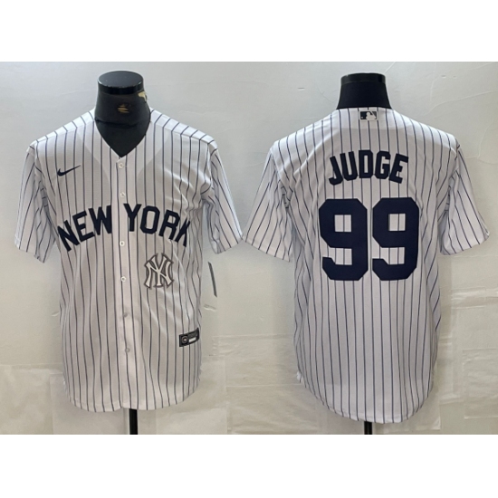 Men's New York Yankees #99 Aaron Judge White Pinstripe Fashion Cool Base Jerseys