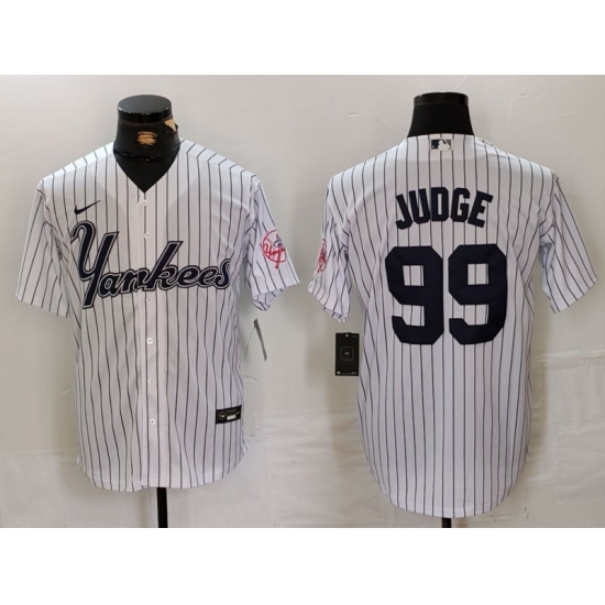 >Men's New York Yankees #99 Aaron Judge White Pinstripe Fashion Cool Base Jersey
