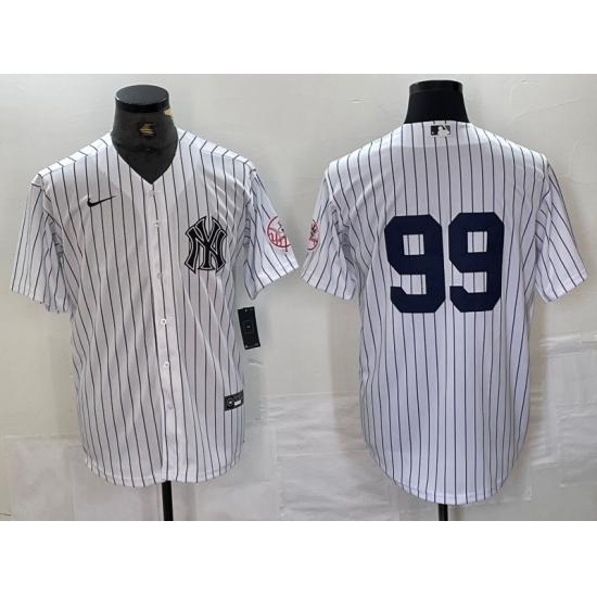 >Men's New York Yankees #99 Aaron Judge White With 2024 Cool Base Stitched Jersey