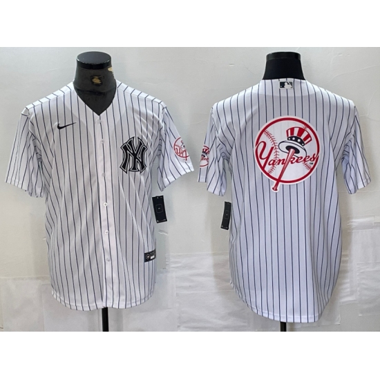 >Men's New York Yankees Big Logo White With 2024 Cool Base Stitched Jersey