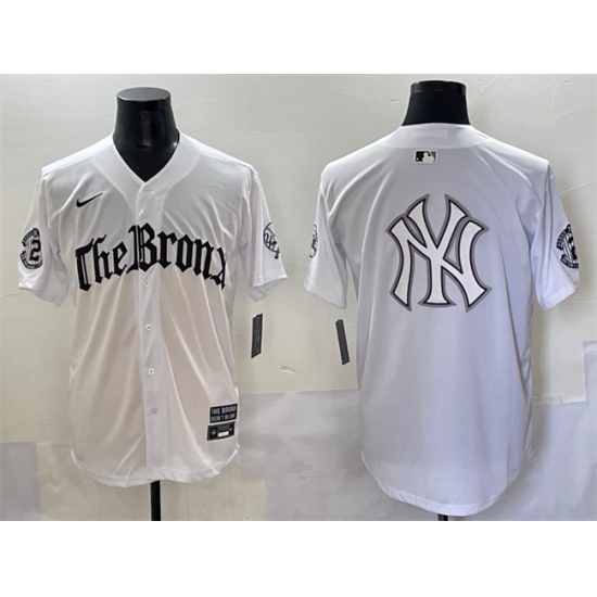 >Men's New York Yankees Team Big Logo White 'Gothic Legacy Edition' Vapor Premier Limited Stitched Baseball Jerseys