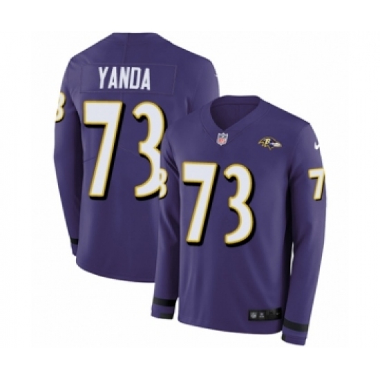 Men's Nike Baltimore Ravens #73 Marshal Yanda Limited Purple Therma Long Sleeve NFL Jersey