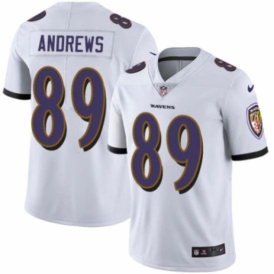 >Men's Nike Baltimore Ravens #89 Mark Andrews White Vapor Untouchable Limited Player NFL Jersey