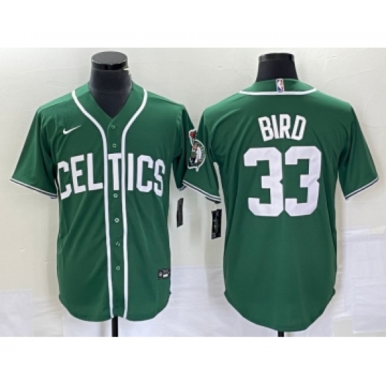 >Men's Nike Boston Celtics #33 Larry Bird Green Stitched Baseball Jersey