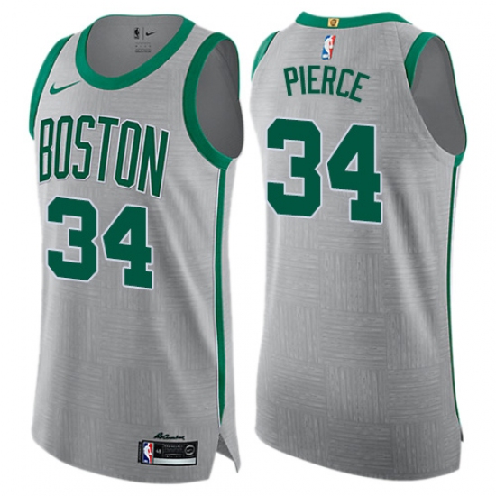 Home>NBA>Boston Celtics>Paul Pierce>Men's Nike Boston Celtics #34 Paul Pierce Authentic Gray NBA Jersey - City Edition