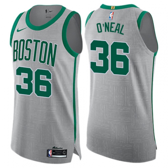 Home>NBA>Boston Celtics>Shaquille O'Neal>Men's Nike Boston Celtics #36 Shaquille O'Neal Authentic Gray NBA Jersey - City Edition