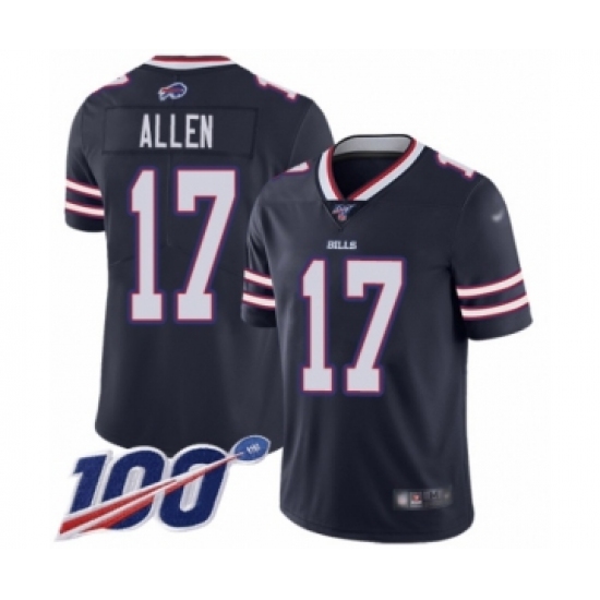 >Men's Nike Buffalo Bills #17 Josh Allen Limited Navy Blue Inverted Legend 100th Season NFL Jersey