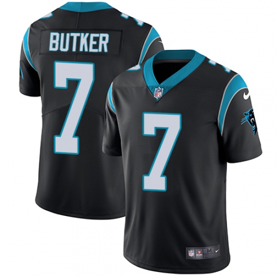 Home>NFL>Carolina Panthers>Harrison Butker>Men's Nike Carolina Panthers #7 Harrison Butker Black Team Color Vapor Untouchable Limited Player NFL Jersey